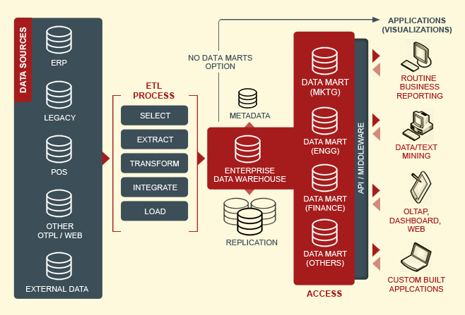 This kind of architecture is generally preferred by small organizations that need to create quick reporting capability across one organ of the enterprise like sales or inventory. There is generally one source involved in this and the reports are directly created out of the data mart..